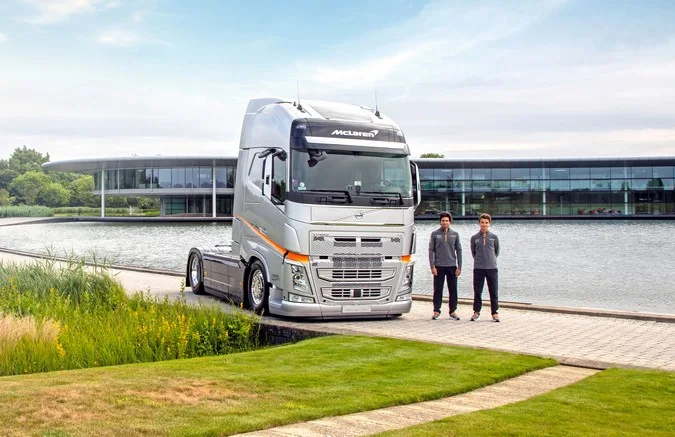 As 24 unidades dos modelos Volvo FH, pertencentes a McLaren Racing, encontram-se à venda nos 14 centros de caminhões usados da marca sueca no Reino Unido.